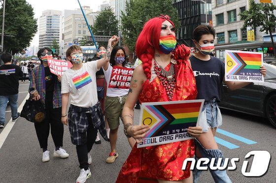 서울퀴어문화축제 조직위는 27일 오후 5시30분 서울 남대문시장을 출발해 중구 한빛광장까지 약 2.2㎞ 구간을 차량 및 도보로 행진하는 퍼레이드를 했다.