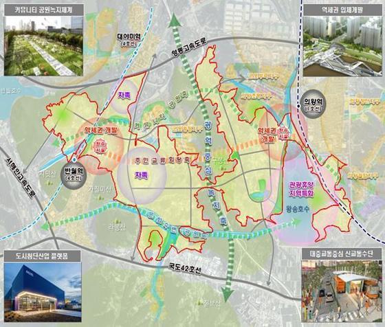 정부는 통합형 신도시로 조성할 계획이다. 의왕·군포·안산을 서로 연결할 수 있는 신교통수단을 도입하는 동시에 180만㎡ 규모의 공원과 녹지도 만들 예정이다.
